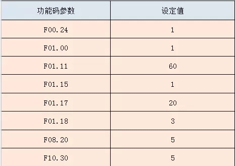 由于塑料壓鑄機對變頻器的性能要求較高,需具備指令響應迅速,能夠長時間持續(xù)穩(wěn)定運行。采用SKI600后,能夠根據(jù)設備運行情況,數(shù)據(jù)設定加速2秒,減速0.2秒,中速可調(diào)0~60HZ,高速60HZ,低速5HZ運行。參數(shù)設置: